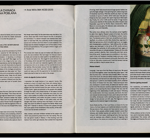 Worn together in this chorus, we are the wardrobe of La China Poblana. Today we are a costume for folk dancing in, to don with pride for a national celebration, but once we were looked down upon with disdain. In Quechua, la chinaca means the servant—but who was she? She began as the mestizaje woman who lived in the village by her own rules, marked by confidence, independence, and her distinguished role in her pueblo. She was met with fascination by Spanish women, who observed her from afar, without humanity: not as a person, but as an emblem of the heritage and glamour of the colony. They both revered and distrusted her. Society stripped her of her identity, and conveniently molded her into a pious emblem of national pride. Today we will share with you the story of a woman known to carry a machete, a national icon, adopted as a symbol of Mexico and the Revolution. Join us as we introduce each part of ourself. Every wardrobe tells a story…